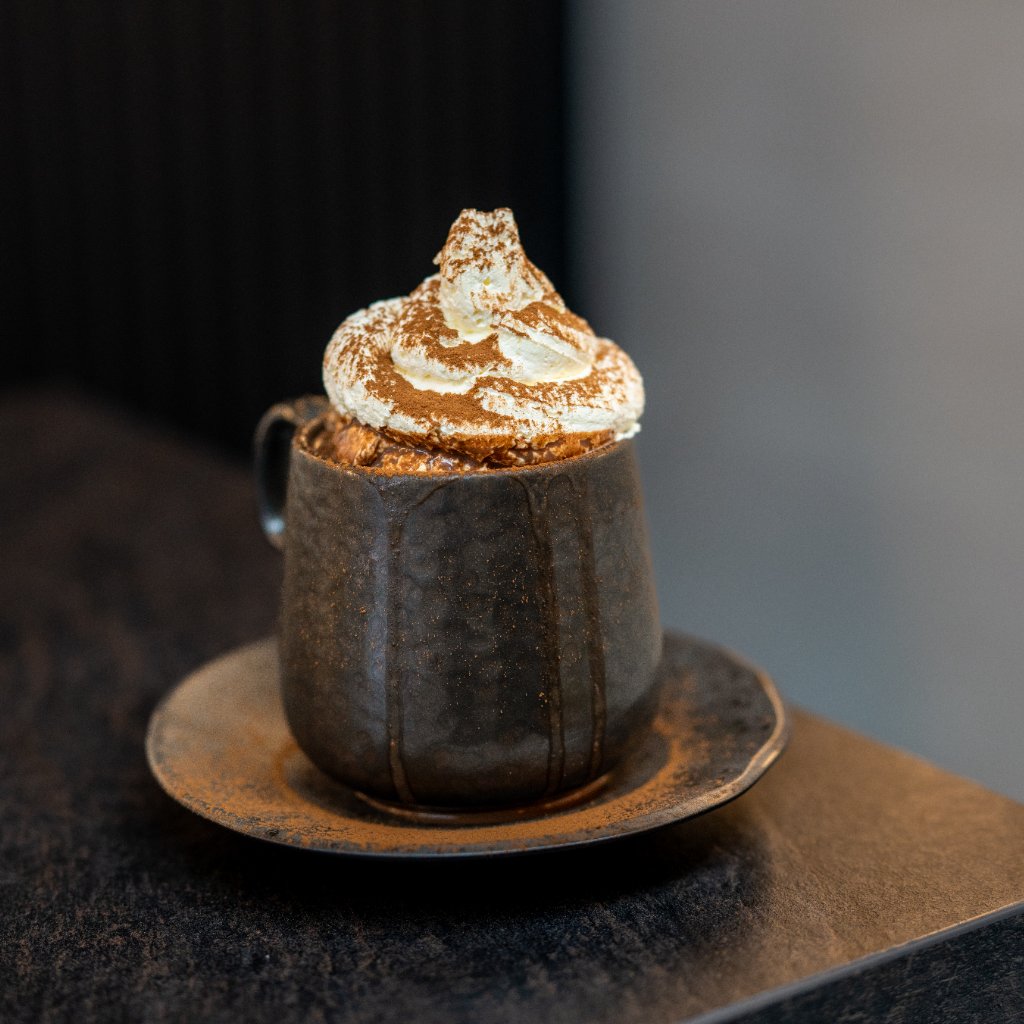 Gooey chocolate lava cake, topped with rich Belgian chocolate sauce, our in-house kinder sauce & kinder shavings!