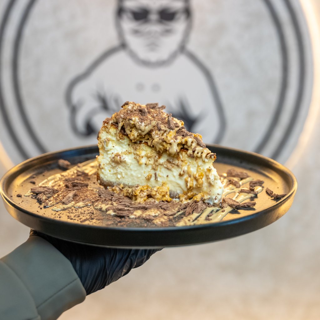 £10.00The Krunch version of The Kinder 2.0. Our famous Cheesecake, topped with Kinder Krunch, a drizzle of Belgian Milk Chocolate and Flake